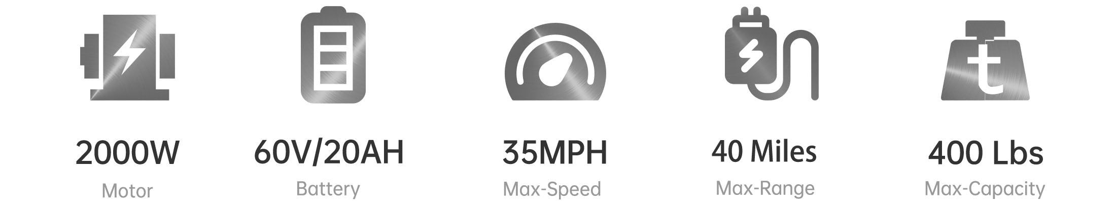 | Controller | 60V / 55A integrated controller | Max-Load | 440 Lbs |